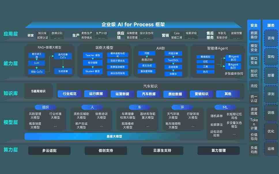 端到端的一站式AI工作空间深度融合了从企业战略规划到日常经营的全流程业务板块,,,定向解决车企内部领域多、、部门多、、、链条长、、场景碎片化等难题,,,支持车企快速构建以AI为核心的生产力写作体系,,,,实现任务执行与AI能力的无缝集成与交互